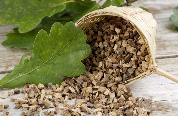 - Дубовая кора – получила распространение в медицине благодаря вяжущим свойствам. Благотворно воздействует на слизистые поверхности мягких тканей. На их поверхности формируется слой защитной пленки.