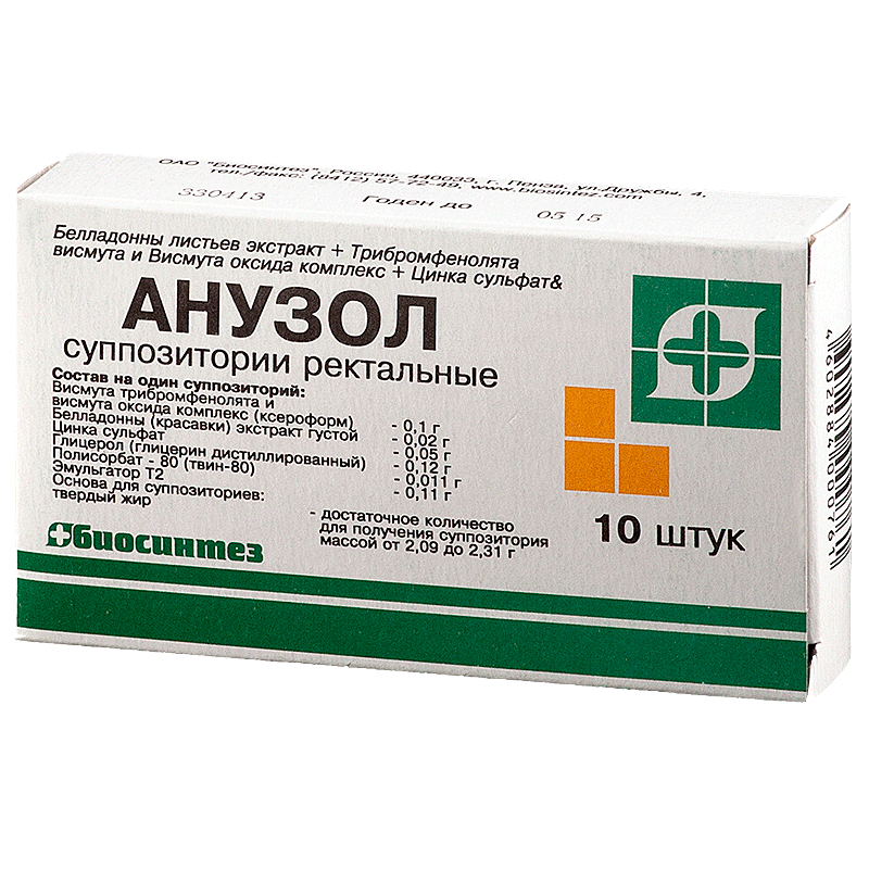 - Анузол (суппозитории на основе экстракта красавки, ксеноформа и сульфата цинка, цена – от 50 до 100 рублей);