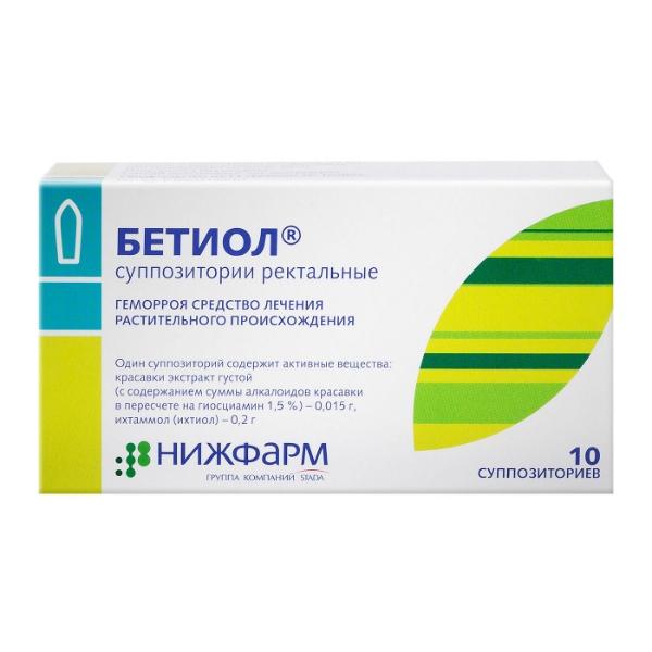 - Бетиол (ректальные суппозитории, ихтиол, экстракт красавки, 50-80 рублей).